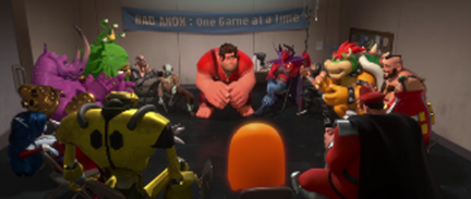 La noche del 30º aniversario de Repara-Félix Jr., Ralph decide ir a un grupo de terapia para personajes malos de videojuegos llamado Bad-Anon situado en el videojuego Pac-Man, ya que el anfitrión Clyde, había invitado frecuentemente Ralph, pero nunca había aceptado hasta hoy. Entre los participantes se encuentran personajes como Bowser, Zangief, M. Bison, Neff y Dr. Eggman. Después de que Ralph cuenta su historia a los demás, les confiesa que ya no quiere seguir siendo malo, a lo que ellos se sorprenden diciéndole que no puede cambiar lo que es y debe aprender a aceptarse. Luego todos salen de Pac-Man en un tren a través del cable de alimentación hacia la Video Estación Central, donde Ralph es detenido por la seguridad para un interrogatorio aleatorio de rutina por el Surge Protector, Ralph se molesta al alegar que siempre lo detienen a él. Después de ve un vídeo de ayuda en las pantallas de la estación donde Sonic explica que es peligroso entrar a otros juegos, pues si se llega a morir fuera del juego propio nunca te podrás regenerar, muriendo para siempre. Luego Ralph regala una cereza que recogió en Pac-Man a unos personajes del videojuego Q*bert que están como vagabundos, ya que cuando un videojuego es desenchufado para siempre, los personajes de este tratan de escapar refugiándose ahí.