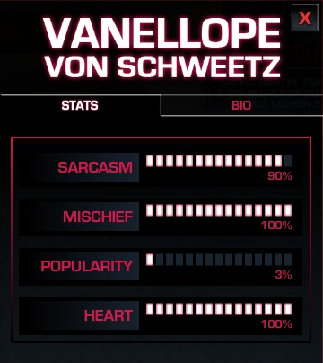 Estadísticas de Vanellope según el sitio oficial de Disney.